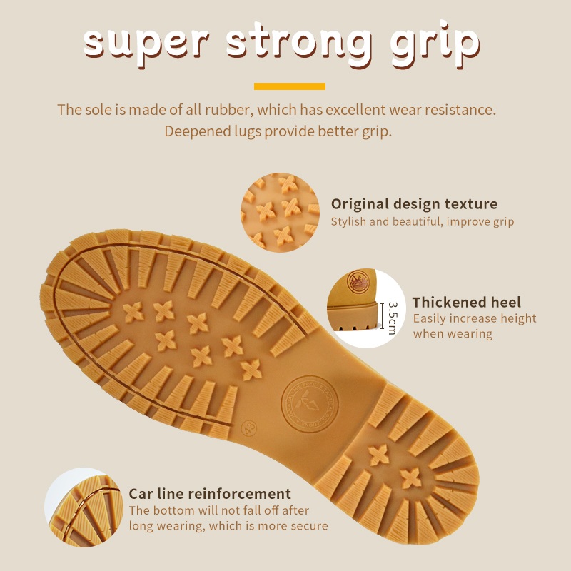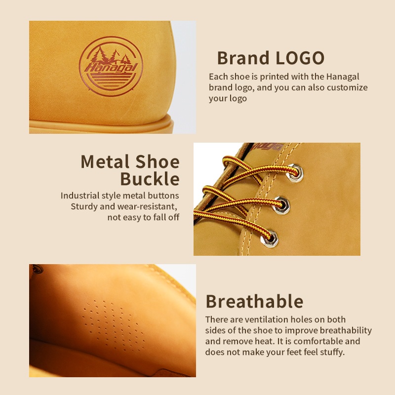 Dessa bekväma nubuck-läderstövlar i hel gummi finns i lager och redo att skickas, med beställningar från bara 10 par. För mer information eller prisförfrågningar, hör gärna av dig när som helst. Anpassning är också tillgänglig med en minsta beställning på 800 par. Och denna modell har följande fördelar: