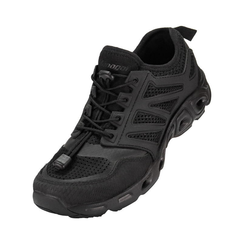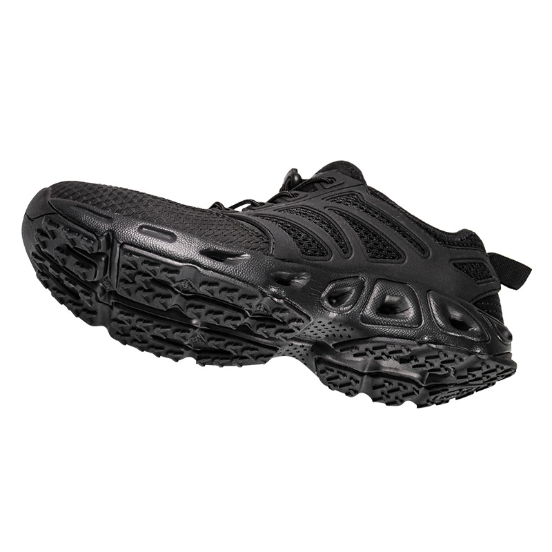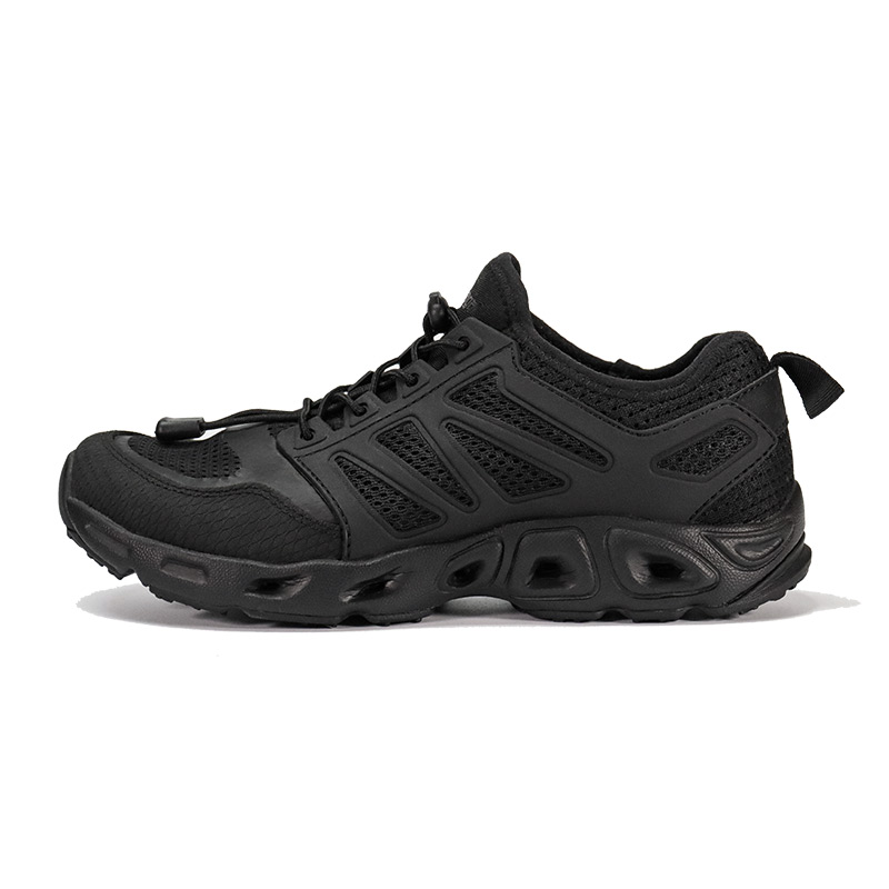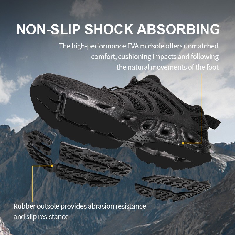 EVA Shock Absorbing Trekking Shoes är byggda för leden - våt eller torr. Med snabbtorkande material och dräneringsportar i bågen släpper den vatten snabbt när du går från bäck till topp. En gummihällapp låser stabiliteten, medan EVA-mellansulan ger mjuk, stötdämpande komfort under foten. Och den robusta yttersulan i gummi? Byggd för att greppa nästan vad som helst – sten, lera, löst grus. Det är amfibiskt, smidigt och byggt för att flytta med dig.