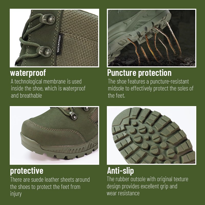 Dessa punkteringssäkra vattentäta stridsstövlar finns i lager och redo att skickas, med beställningar från bara 10 par. För mer information eller prisförfrågningar, hör gärna av dig när som helst. Anpassning är också tillgänglig med en minsta beställning på 800 par. Och denna modell har följande fördelar: