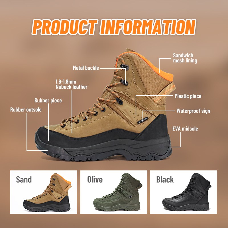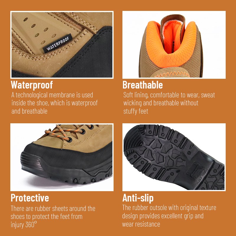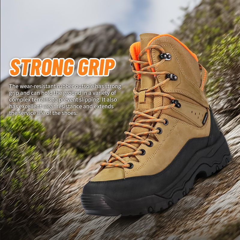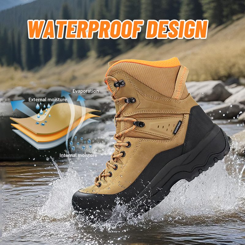 Hala stigar slutar inte här. Robust yttersula låser sig mot våt sten och löst underlag, medan vattentät konstruktion håller fötterna torra genom bäckar och regn. Strong Grip Anti-Slip vattentäta vandringsskor—förtroende i varje steg.Skicka oss förfrågan för ytterligare information.